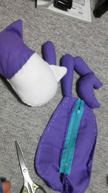 後ろにはファスナーつけました