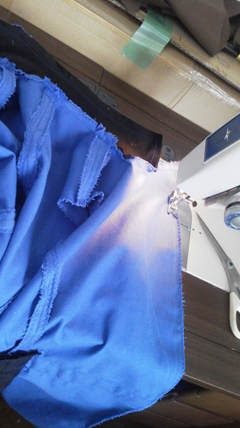 上で言ってたプリーツの上の切り替え部分も端ミシンかけました。