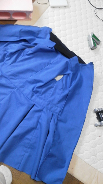 その前には、プリーツの上の部分の切り替えを縫いましたよ。