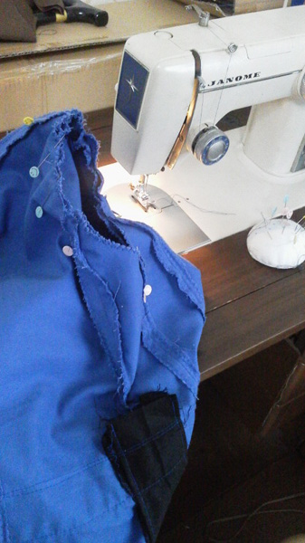 後は、袖丈と裾あげ、ボタンとポケット付け、腰リボンで完成☆