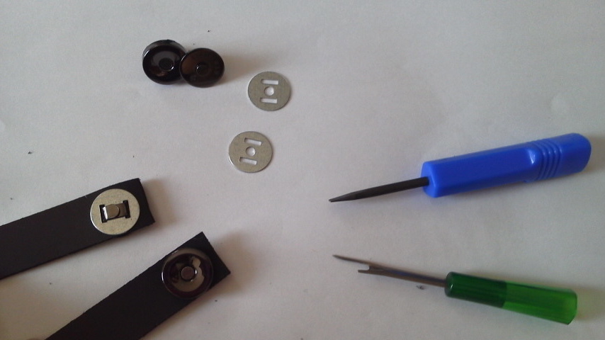 1.5センチ幅の本皮テープ、金具付き革ベルト、マグネットホック