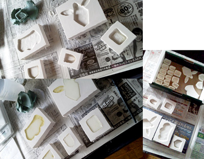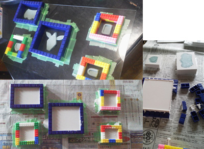 原型をブロックで囲って、剥離剤を塗る(上)